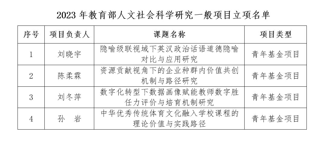 近日,教育部社科司对2023年度教育部人文社会科学研究一般项目评审结果进行公示,我校成功获批4项青年基金项目,立项数居省属高校并列首位,取得历史性新突破。