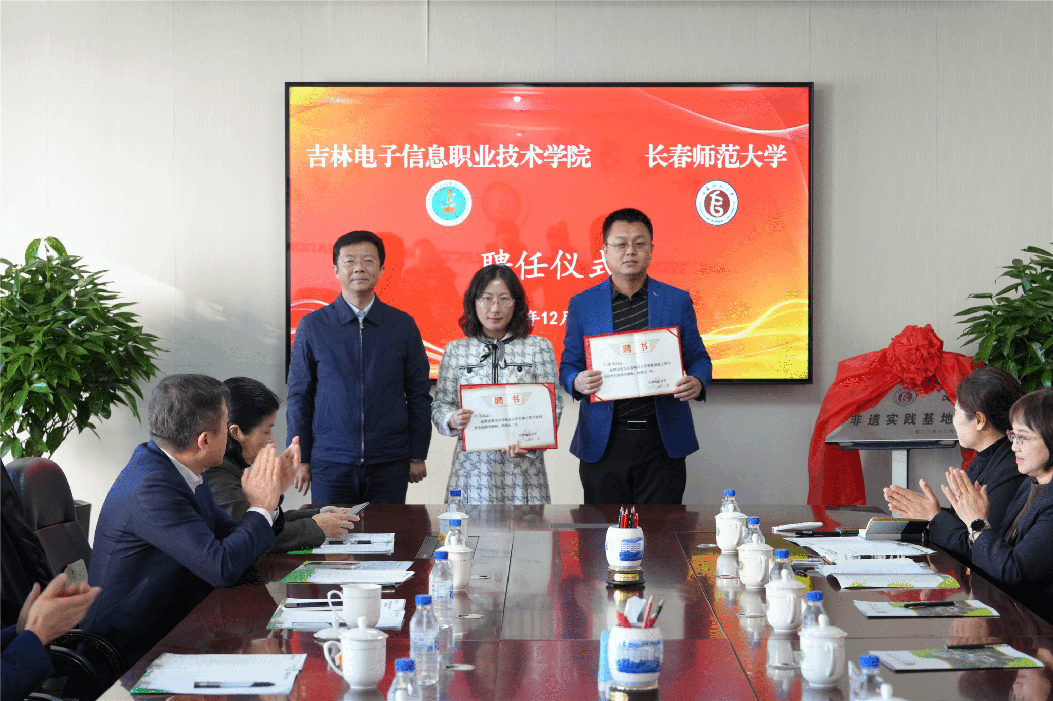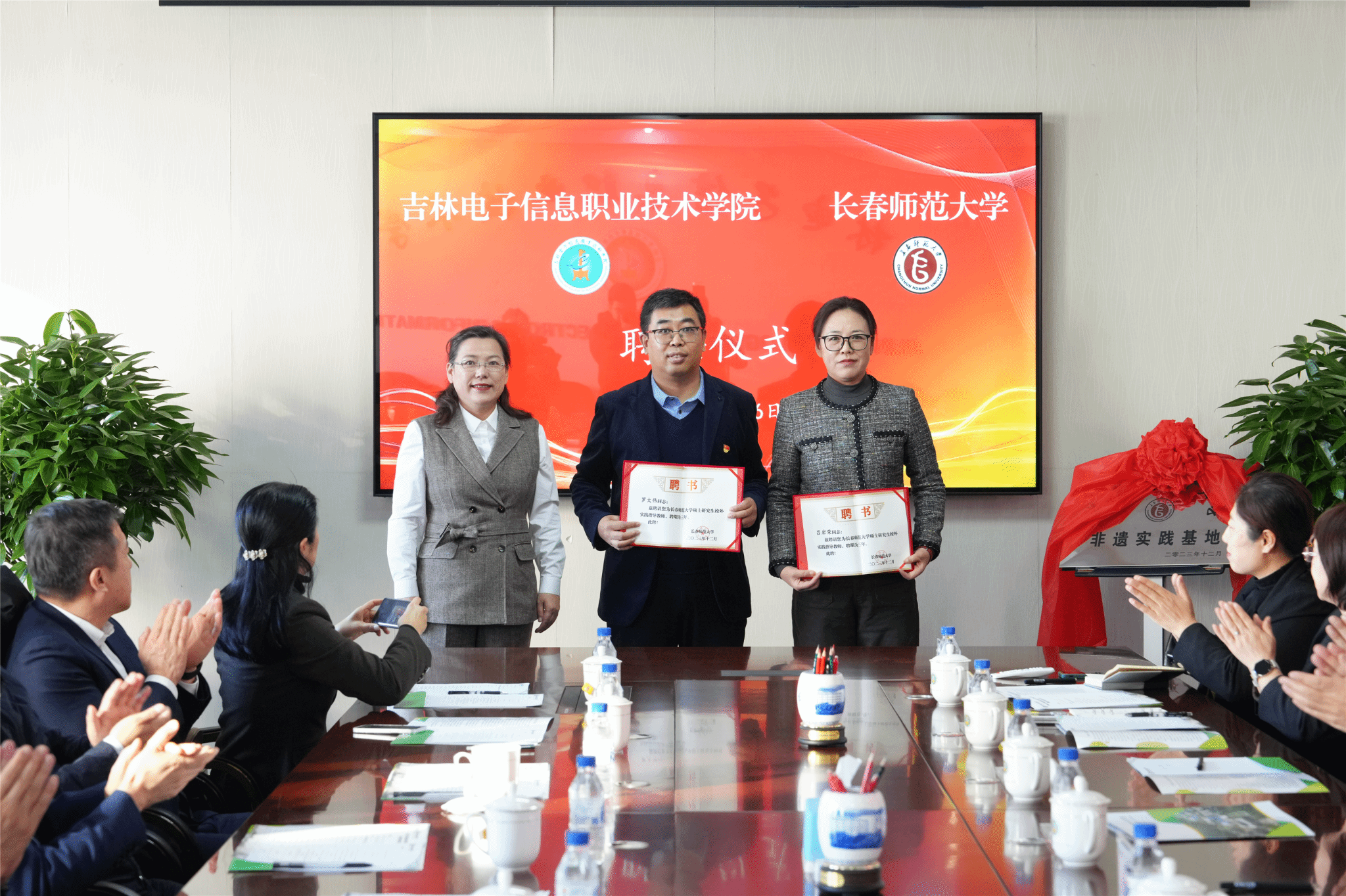 刘占文代表吉林电子信息职业技术学院为杨影、孙立巍、赵东三位教授颁发了客座教授聘书。