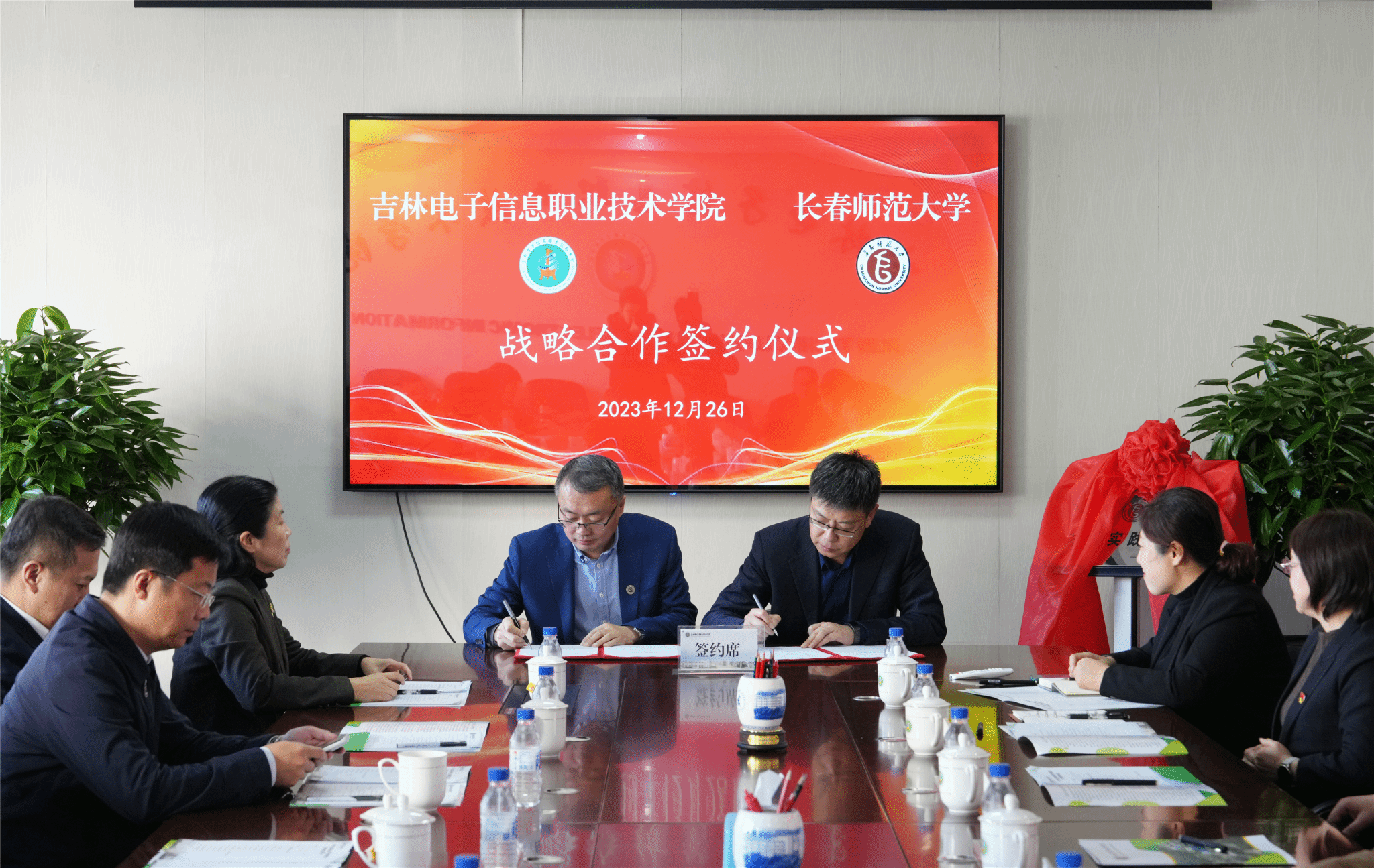 12月26日上午,我校与吉林电子信息职业技术学院战略合作签约仪式在吉林电子信息职业技术学院举行。我校党委书记刘多,党委副书记、校长王延明,副校长胡德超、刘鹏飞、陈爱梅,吉林电子信息职业技术学院党委书记何晓杰,党委副书记、校长杨勇,党委副书记石洪发,纪委书记高楠,副校长于钧、刘占文、张晓娟出席签约仪式。